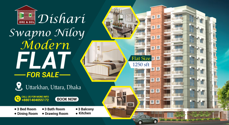 🔸৩ বেডরুম, ৩ বাথরুম,৩ ব্যালকনি, ডাইনিং ও ড্রইং, কিচেন।